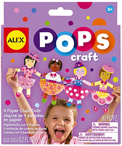 ALEX Toys - Craft, Paper Chain Dolls, 1193 lets you peel, stick and glue a parade of fashions to your new dolls! Includes (46) stickers, (26) paper shapes, (1) paperdoll chain, (6) cupcakes liners, glue and easy instructions. Great for gifts and party favors! ALEX is renowned for producing quality craft projects for children of all ages, and this year is no exception. Our signature detail and creativity continues with wonderful new introductions, turning classic crafting into modern projects with a sophisticated look and finish. Parents love the quality ALEX puts into traditional crafts, and kids love that we make them trendy! ALEX Toys - Craft, Paper Chain Dolls, 1193 is recommended for age 5 and up. ALEX Toys takes the mission of providing children with quality creative products that foster personal expression and build self-esteem to heart! ALEX products are currently sold in over 80 countries worldwide in specialty toy and retail shops. Visit www.amazon.com/alex-brands for more information on Alex Brands and our best-selling line of educational and entertaining products for kids.Feature