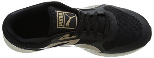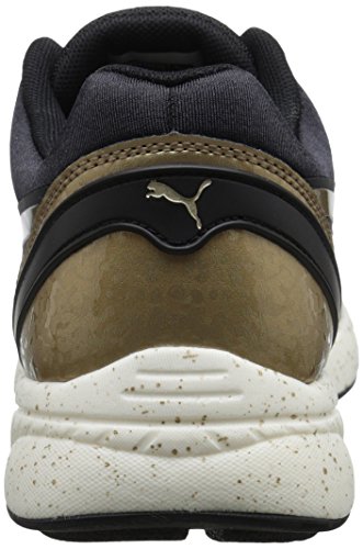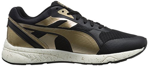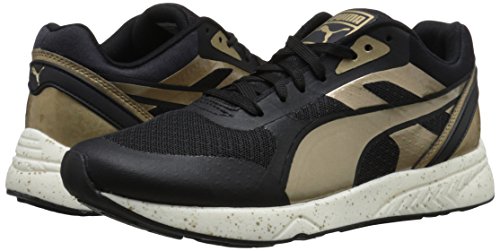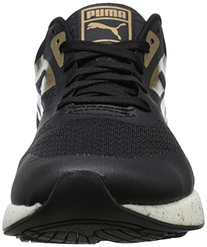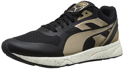 698 ignite is a bridge across generations of PUMA sneakers. The classic that fuses into the evolution. The curves on the 698 tooling recall those of the transonic silhouette while the ignite foam gives a new meaning to responsiveness and lightweight. This pack combines classic black and white color ways with metallic gold and silver overlays and a speckled midsole for a bold shiny overall aspect and style.