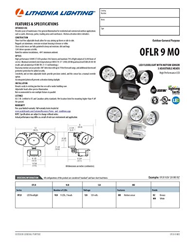 - Title : Lithonia OFLR 9LN 120 MO BZ M2 LED Outdoor 3-Light Floodlight with Motion Sensor, Bronze
