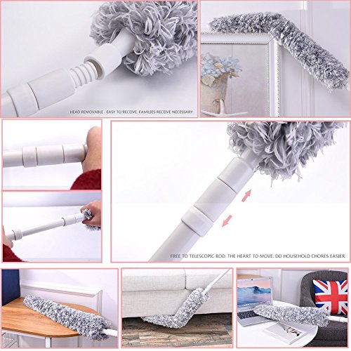 -. Feature : ENJOY YOUR DUST-FREE PLACE - Our feathered duster consists of millions of electrostatically-charged fibers that attract even the tiniest dirt and dust particles like a magnet, leaving any surface dust-free. The microfibered head is super soft and absorbent, non-abrasive, and lint-free. Using this hypoallergenic dusting tool will cut dusting time nearly in half / SUPERIOR WORKMANSHIP - When it comes to our telescoping microfiber dusters, we make a point of using nothing but exquisite quality materials and latest production processes, so that we can ensure that they will last you for many years to come / REACH FOR THE STARS - Okay, we admit it, it may not be able to actually reach the stars, but our telescoping duster is tall enough to certainly reach your ceilings, window blinds, ceiling fans, cars, moldings, and bookcases since it can become 70" long. Duster with extension pole included! / VERSATILE DESIGN -- Outfitted with a comfortable grip handle that comes equipped with a hole for easy hanging storage. The threaded telescoping handle can be removed. EASY TO CLEAN! Simply slide the microfiber top off the duster core and machine wash with warm or low hand water! / We Stand by Our Product and we offer a 90-Day Risk Free 100% Money Back Guarantee. Click Add to Cart Now - This Amazing Deal will only be offered for a Limited Time.