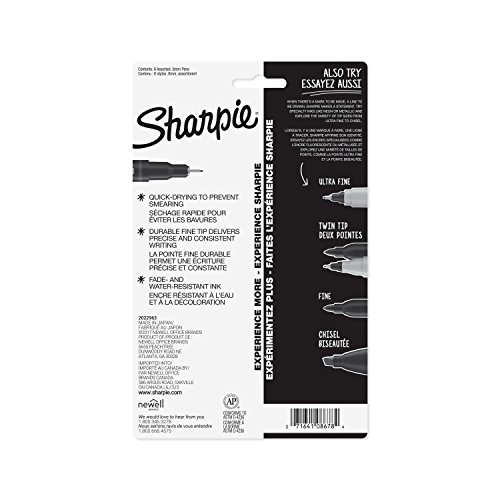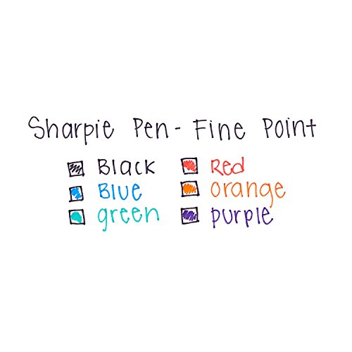 -. Feature : Color-full, brilliant shades ignite thought-provoking messages / Ink won't bleed through paper and is acid-free and archival-quality / Quick-drying ink is both water- and fade-resistant; AP certified / Fine point and slim, contoured design for effortless detail and control / Includes: black, blue, red, green, orange, and violet Sharpie fine point pens