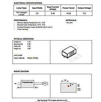 Keystone Ballasts 12 Volt Halogen Transformer Ballast model number KTET-60-1-WC-F