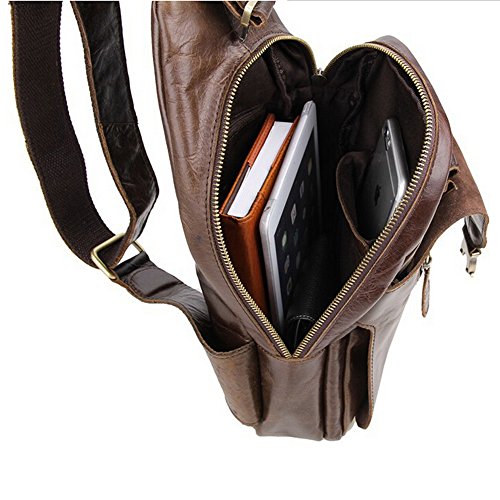 -. Brand : SEALINF -. Department : mens -. Feature : Material: full-grain leather; Size: approx 8.5" x 12" x 3" / Adjustable shoulder strap; designed with spacious main compartment with zipper closure and anti-theft buckle / Sufficient use of multiple pockets, including one main compartment with 1 mobile phone holder and 1 zippered inner pocket; 1 larger front pocket with 1 smaller buttoned inside pocket and 1 bigger inside pocket;1 smaller zippered front pocket; and 1 zippered back pocket / Perfect for holding iPad, iPad mini, mobile phone, wallet and other small belongings / Package includes: 1 SEALINF chest bag -. ProductGroup : Apparel -. ProductTypeName : LAGE -. Size : 8.5" x 12" x 3" -. Title : SEALINF Men's Leather Outdoor Chest Cross Body Bag Fanny Backpack
