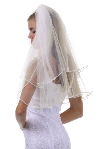 (HOT FROM HOLLYWOOD)/Accessories/Scarves/DIRECT FROM USA/Wedding Bridal Double Layer Elbow Length 36" Veil Satin Ribbon Edge Headpiece