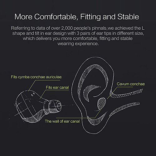 -. Feature : New Concept Truly Wireless Earbuds, fashionable and black sentience technology design. No cable mess, convenient to share the music with your families or friends. / Bluetooth V4.1 Version Incredible Stereo Sound Great Noise Cancellation, powerful signal with up to 33feet operation distance and hands free calling with voice prompt notification of incoming calls. Ergonomic Design Comfortable Secure Fit, flexible In ear earbuds ensure comfortable wearing without falling out, keep you pain free even after wearing the earphones for hours on end. / Smart Multipoint Support; connect with two devices at once to enable smart switching in seconds. / This means while you're listening to music on your tablet and you get a call on your phone, you can answer the call without having to pair a new device. / Wireless connection range up to 10 meters.