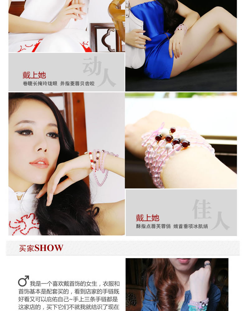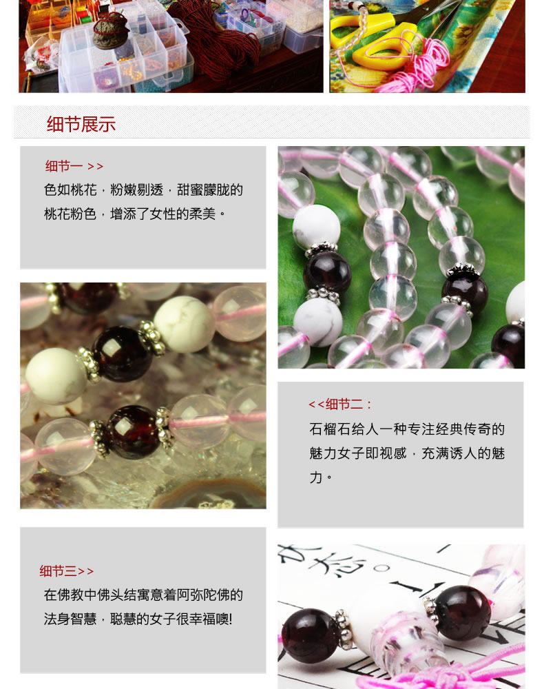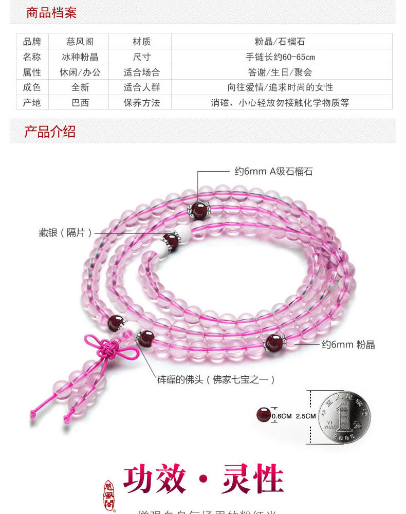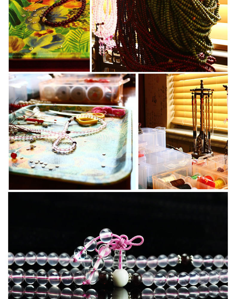 开光天然巴西冰种粉晶108颗手链 招桃花姻缘爱情水晶