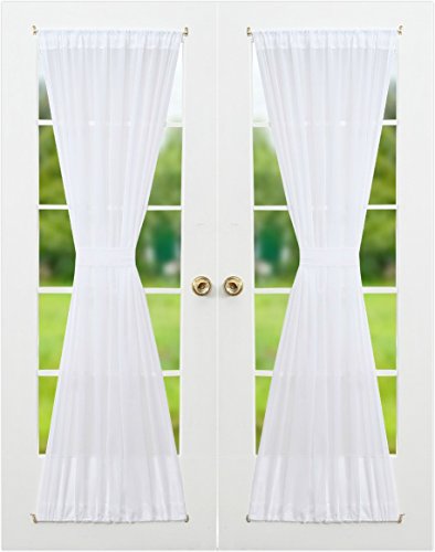 RHF Voile French Door Curtains-Set of 2 Panels, 40W by 72L Inches, Sheer White