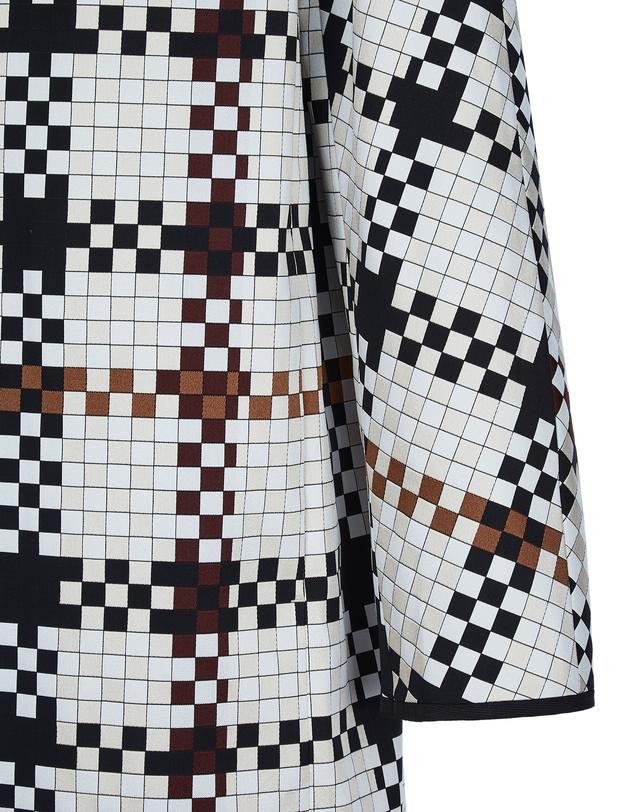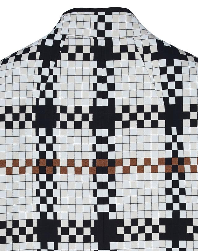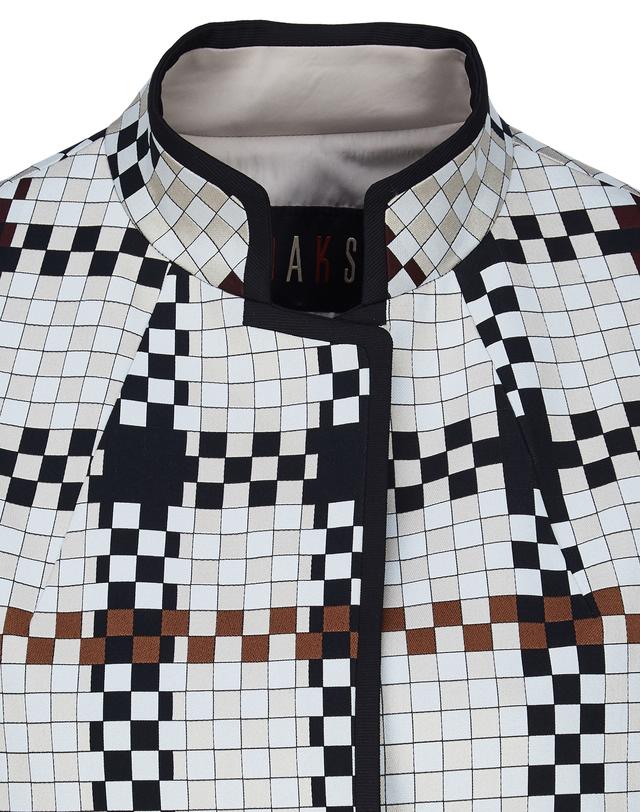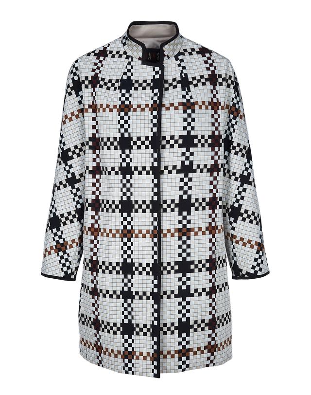그래픽적인 느낌으로 연출한 체크 패턴이 멋스러우며 하이넥 디자인으로 세련된 외관을 연출한 코트입니다.