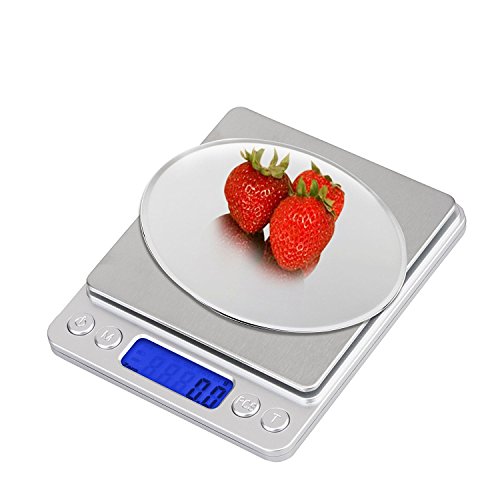- Stainless Steel Materials - The digital kitchen food scale is crafted to be strong, accurate, fast, and user-friendly. With a weight range of up to 3000g/105.82oz, and increments of 0.1g/o.005oz,Constructed with a high-quality stainless steel platform, durable and easy to clean.