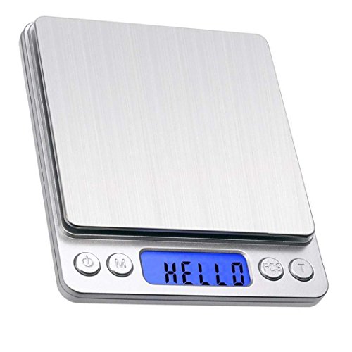 - Diverse Functionality : Digital grams scale( 0.1 g to 3000 g) with backlit LCD screen quickly convert measurement results between g, oz, ct, dwt, ozt and gn. Comes with two trays (13cm, 10cm), which can be used as protectors or scale trays. Meet your demand of measuring different things. Power AAA * 2 (not included)