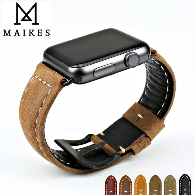 | [해외]Maikes 새로운 디자인 빈티지 정품 소 가죽 시계 줄 시계 액세서리 팔찌 apple watch 밴드 42 미리메터 38 미리메터 시리즈 1 2 |