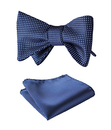 -. Feature : Polka Dot / 100% Silk / self bowtie handkerchief set / Bowtie Size is 2.5 inch in width 37 inch in length / Handkerchief size is 8.6*8.6 inches