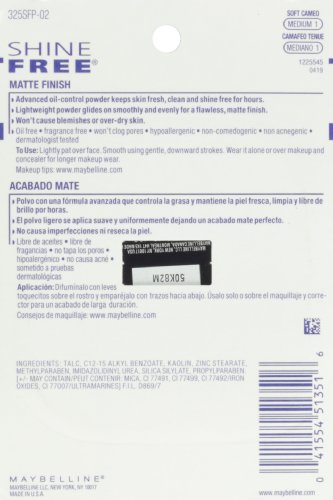 Maybelline New York Shine Free Oil Control Pressed Powder, Soft Cameo , Medium 1, 0.45 Ounce