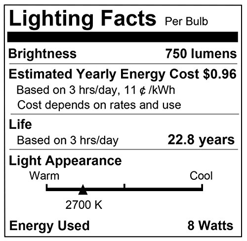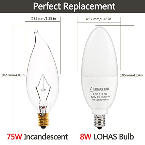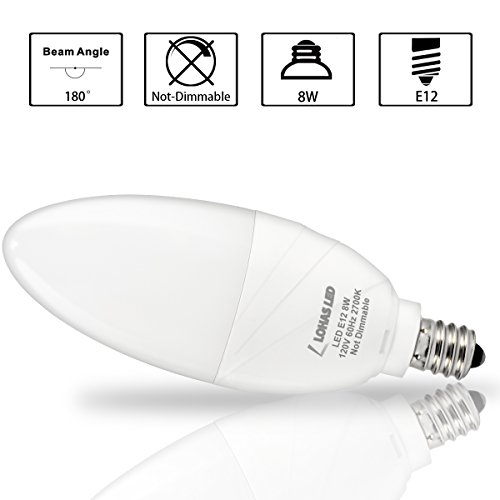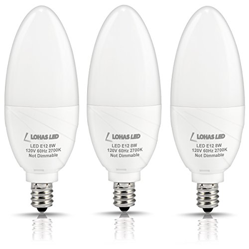 Studio : GK Lighting Publisher : GK Lighting Product Description Specifications: New 8W LED Candelabra Bulb Package: 3 pieces (Not-Dimmable 8W LED Candelabra Bulbs) CRI: >80Ra (Vivid and natural light) Color: White White (2700K) Luminous Intensity: 750LM (High lumen efficiency) Material: Aluminum PC (Good heat dissipation) IP: IP20 (Indoor use only) LED Working Temperature: -25 degrees-celsius - 45 degrees-celsius Life Span: 30,000 hours (Over 16 years with 5 hours/day) Extremely long life, saving labor and electricity cost, Eco-Friendly Features: High brightness and soft light Super luminous flux LED bulb No radiation and no flicker Low light decay and energy saving Good heat dissipation and easy to install Durable environmental long life span Guaranteed Offers convenient features Durable Applications: E12 screw base LED bulbs can be used in many kinds of lamps.Widely used in home decoration, shopping malls,hotels,offices,showcase,hospital, schools, factories,museum,restaurants or any other places where accent lighting is required.The CRI is more than 80 which meets your lighting requirements. Cautions: 1. Switch off the power before replacing the lamp 2. Keep away from direct sunshine and too high temperature 3. Indoor use only 4. If any doubt about the installation or use of this product, consult a competent electrician About Lohas LED Established in 2003, For more than a decade we have provided customers from over 100 countries and areas with excellent LED lighting solutions. Lifestyles of Health and Sustainability is just what LOHAS-LED highly recommend. We have always been dedicating to the research and development of LED lighting products. 0