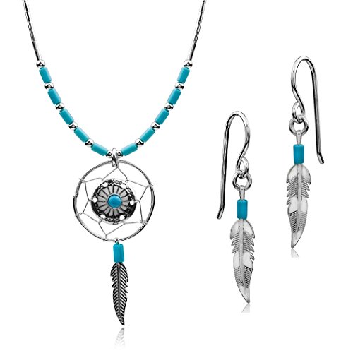 -. Title : Dream Catcher Sterling Silver Turquoise Imitation Earrings Necklace Set 18