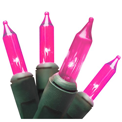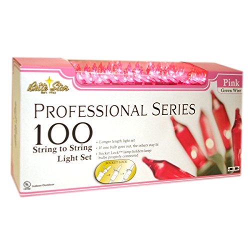 Brite Star 100 Count Professional Series Mini Lights, Green Wire, Pink