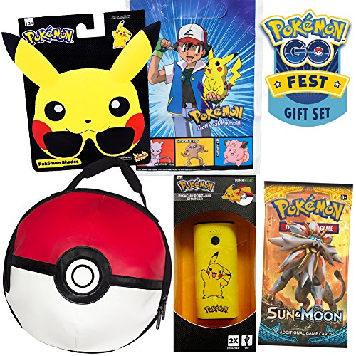 -. Title : Pikachu Pokemon Go Fest Gift Set by ColorBoxCrate, Includes Pikachu Sunglasses, Pokeball Lunch Bag, Pokemon Sun Moon Cards Pack, Portable Pikachu Backup, Plus Vintage Ash and Pikachu Pokemon Gift Bag