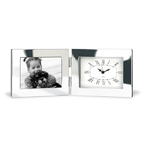 Time Frame, Fold-up Desk Clock and 4" x 6" photo frame, AA battery included, Silver