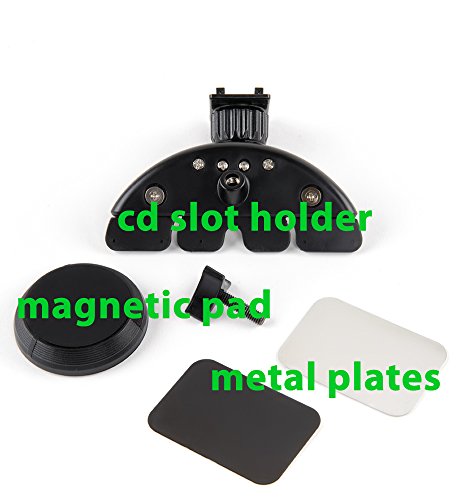 - Feature : Powerful cd slot universal magnetic cradle less car mount holder . Designed to hold securely tablets , Ipad , iphone 6 plus , samsung ,gps and all devices / No suction cup but , cd blade will prevent your device from flipping around . Just insert the blade into your cd loading port / Hands free , easy to use . This is the smartest car mount design you've ever seen . / Powerful magnetic plate will hold your device securely . Never worry about those bumps in the road again . / Rotation . The 360 ° rotation ability of this car mount will give you a confortable and easy access to you device .Enjoy the flexibility by using your phone , gps , ipad ,tablet , mobile , on one unique new generation car mount holder .