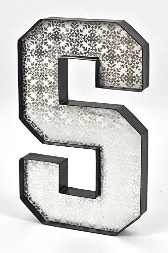 Concepts 6W X 10 1/4L White Silver Foil Damask Print "S" Insert Initial Metal Wall Hanger