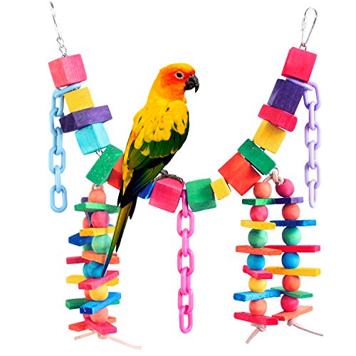 Parrot Toys, Itery Colorful (Color Random) Hanging Bridge For Parakeets Natural Wooden / Handmade / Creative Bird Toy
