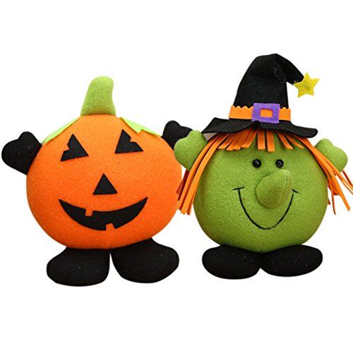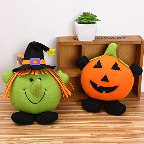 5.51"*7.07" Pumpkin toys and 5.51"*8.26" Witch toys, made of flannel fabric and filled with artificial cotton, soft to touch and squeeze, you can use it as a plush toy