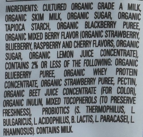 Made with organic fruits and yogurt. No gelatin or artificial flavors. Contains dairy.