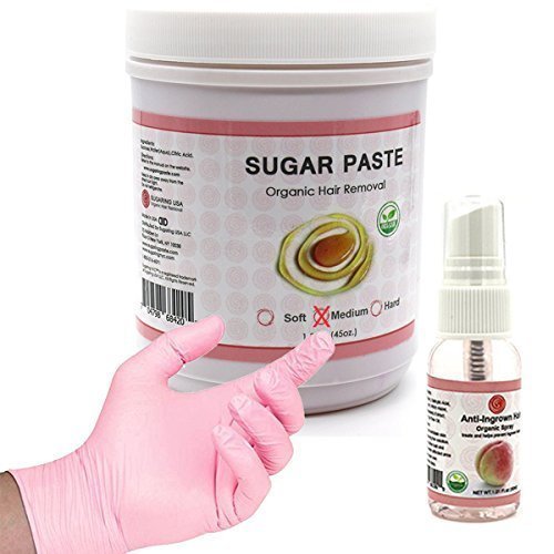 Hard Sugaring Paste for Brazilian, Legs, Bikini Hair Removal + Anti-Ingrown Solution + Sugaring Gloves