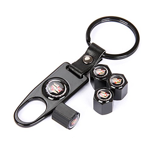 EZKEY Pack of 4 Universal Wheel Tire Valve Stem Air Caps Covers and 1 pc Keychain fit for Cadillac