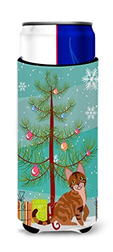 Caroline's Treasures Sokoke Cat Merry Christmas Tree Michelob Ultra Hugger For Slim Cans, Slim Can, Multicolor