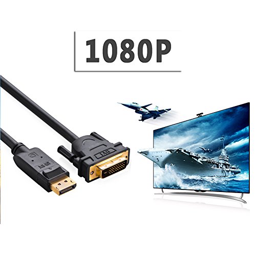 1080P Resolution: this DisplayPort to DVI cable supports resolution up to 1920x1200, 1080P (Full HD), ideal for viewing HD video on larger screen;