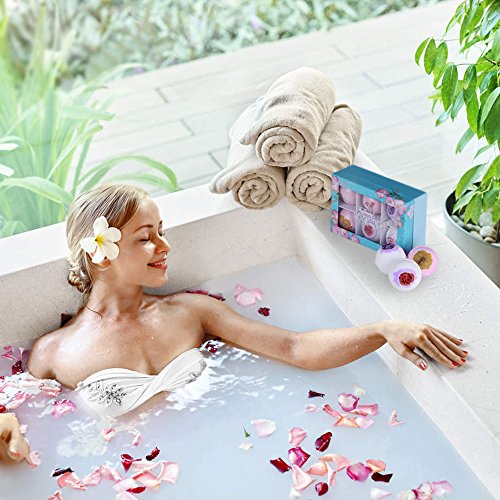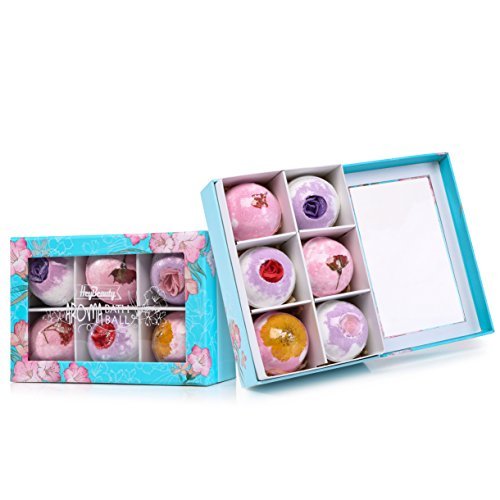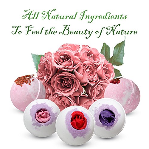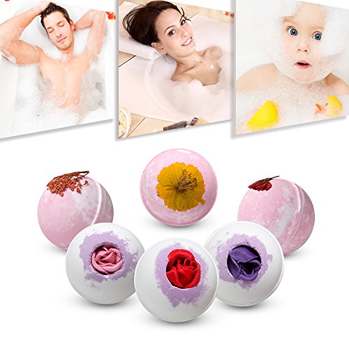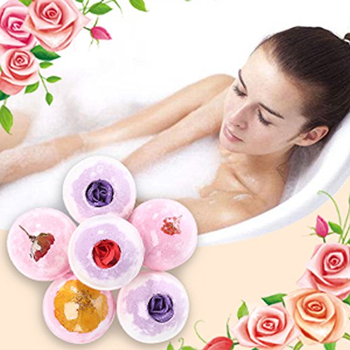 - FIZZES AWAY YOUR DRY SKIN AND FATIGUE: 6 fizzy exquisite bathbombs, each weighs 2.82 oz, are decorated with natural petals and soap flowers which are much prettier than jewelry and rings. Simply enjoy this fizzy bathing experience and let your troubles melt away.