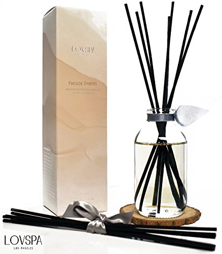 24 HOUR SALE! Winter Fireside Embers Reed Diffuser Set by LOVSPA | Includes a Wood Slice Coaster! Glowing Embers, Wood Smoke, Saffron Suede & Amber Cognac | A Gift for Dad or Husband!