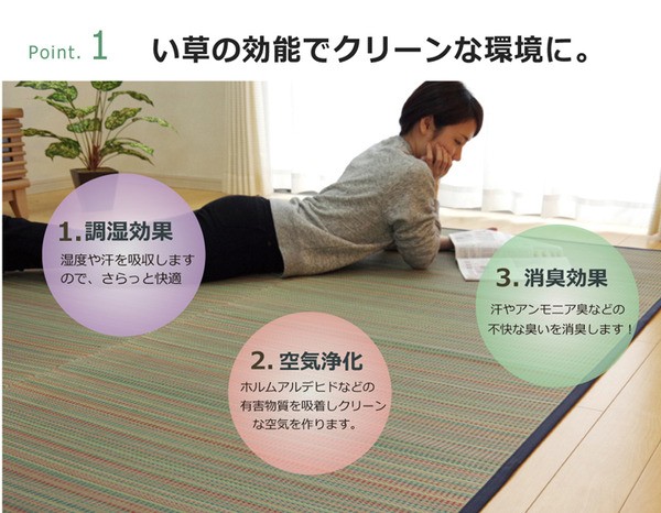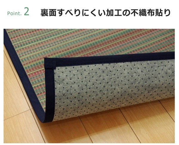【素材】表地=い草 裏地=ポリエステル100%(不織布) ※滑りにくい加工 ※メセキ織ポリエステル100%※メセキ織 ヘリ=ポリエステル100%