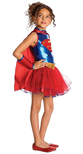 -. Binding : Apparel -. Brand : Rubie's -. Color : Multicoloured -. Department : girls -. Feature : Includes dress, cape, belt, and gloves. / Please note shoes and earrings are not included. / available in toddler size (2T-4T) and child Sizes Small (4-6) and Medium (8-10). Dress like your favorite Superhero! / This is an officially licensed Batman (tm) costume. -. ProductGroup : Apparel -. ProductTypeName : DRESS -. Title : Supergirl Tutu Kids Costume