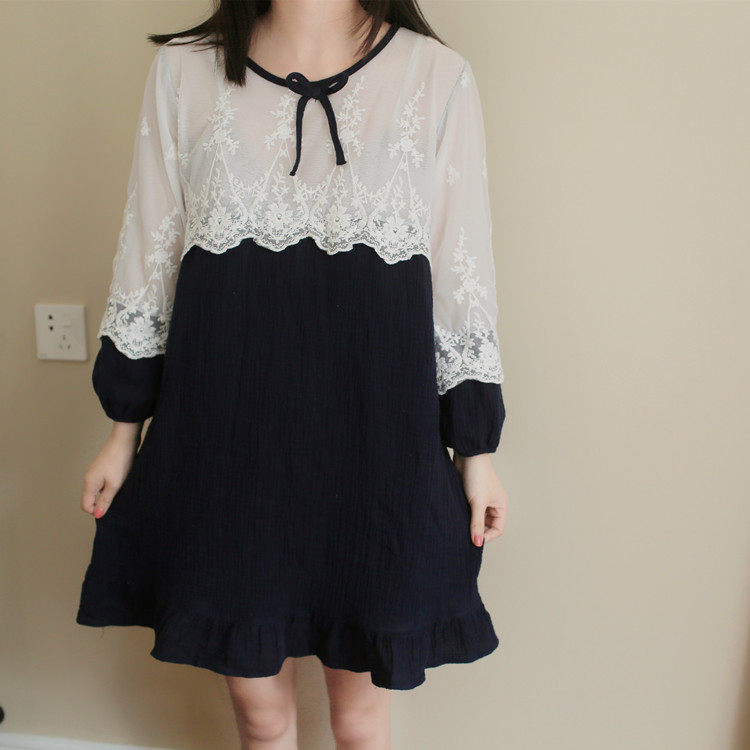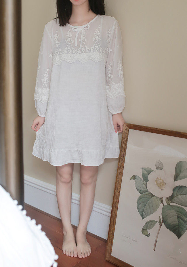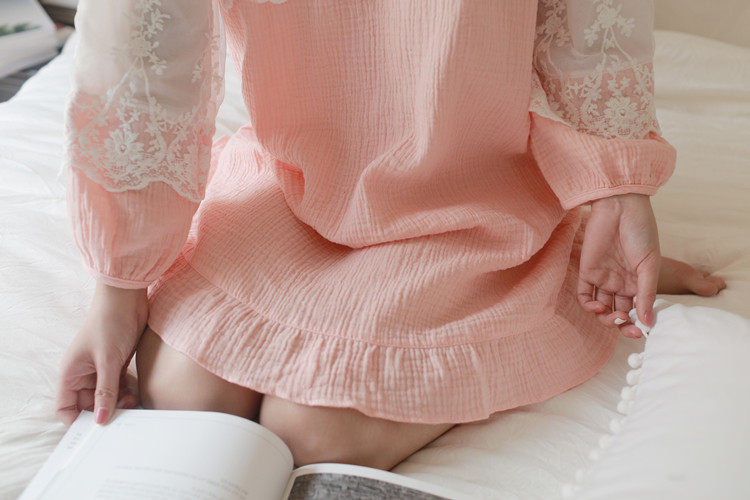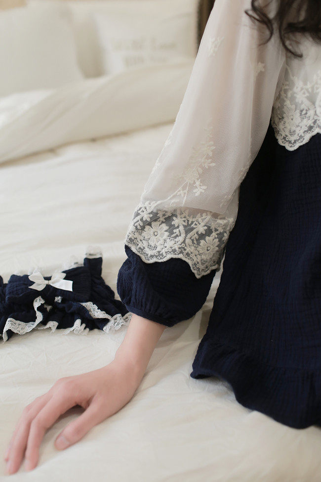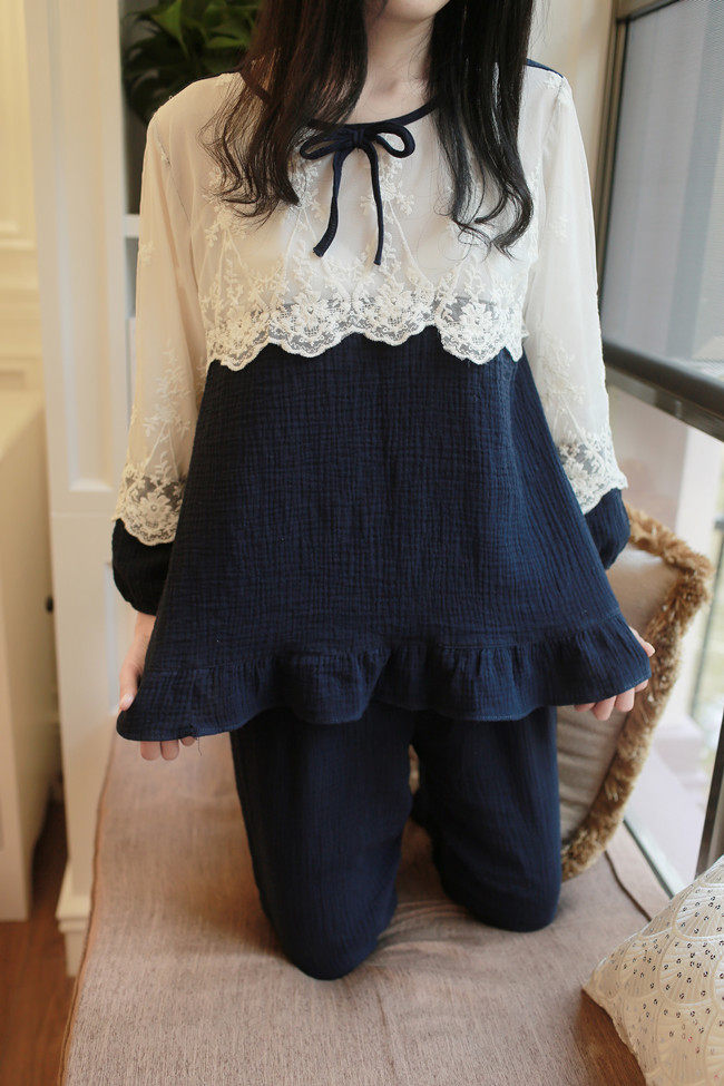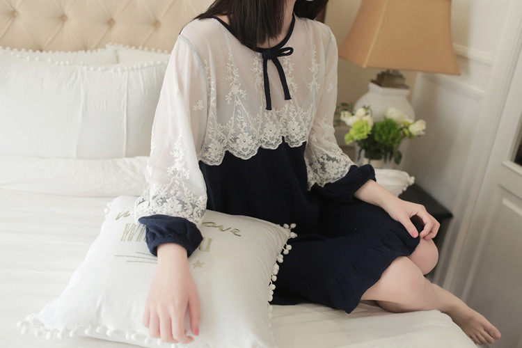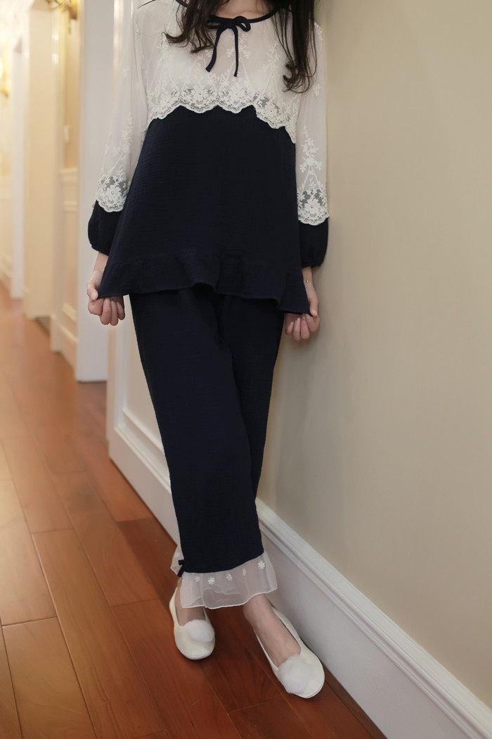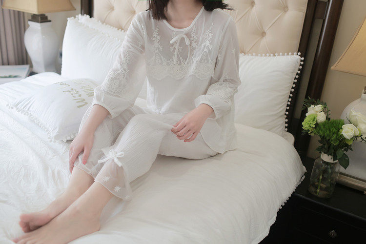 公主甜美睡衣蕾丝花边性感女神睡裙棉麻镂空日系家居服套装春夏季