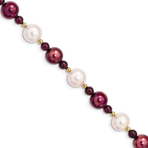 ICECARATS DESIGNER JEWELRY 14K YELLOW GOLD RED GARNET 10 11 WHITE 10MM CRANBERRY FRESHWATER CULTURED PEARL BRACELET 7.5 INCH