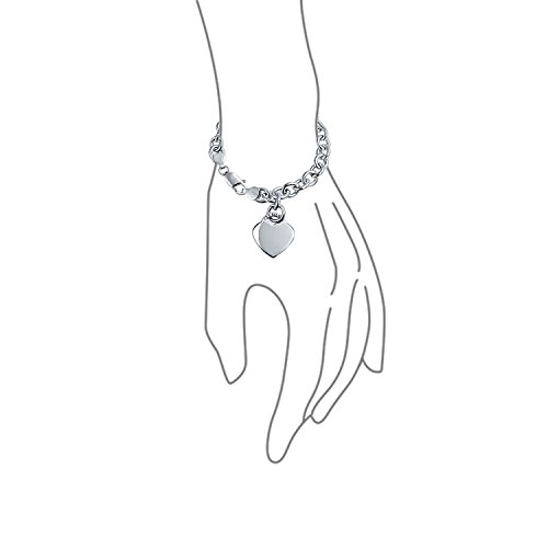 Introducing our charming Silver Heart Tag ID Charm Bracelet. This lovely yet inexpensive heart bracelet is finely crafted by .925 sterling silver. This trendy yet affordable identification bracelet features a sterling silver heart tag linked to a chain bracelet, that is engravable with any message you want to put on it. This beautiful bracelet can fit a 7.5 inch wrist size, and will get the crowd falling in love with your fashionable look. This remarkable jewelry piece will make you look chic and unique with its personal style, and is also a great present for Valentines day, Mothers day, or for anyone on your holiday gift list.Feature
