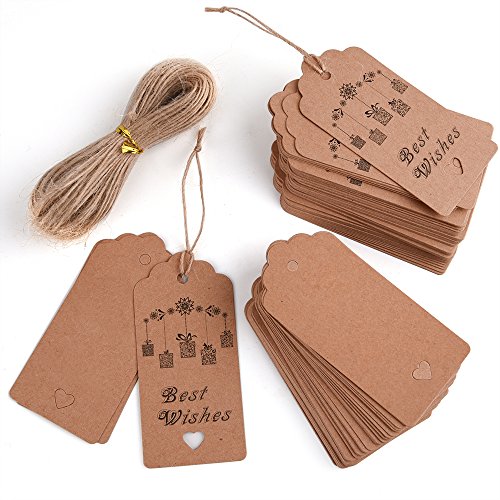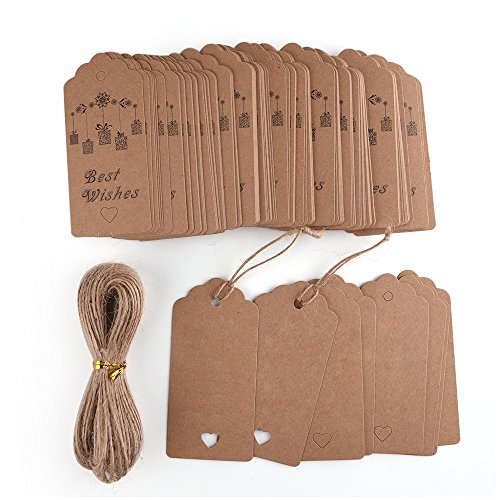 KUUQA 100PCS Kraft Paper Gift Tags Hand Tags With 20m/67 Feet Natural Jute Twine For Thanksgiving Holiday Birthday Wedding Presents
