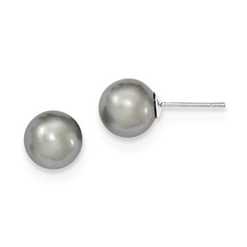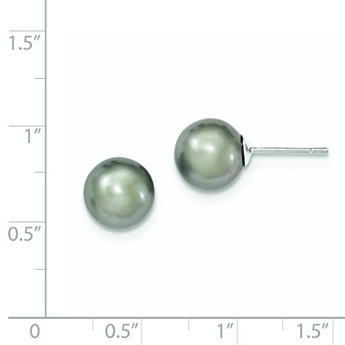 ICECARATS DESIGNER JEWELRY 925 STERLING SILVER 9MM GREY FRESHWATER CULTURED ROUND PEARL STUD BALL BUTTON STUD EARRINGS