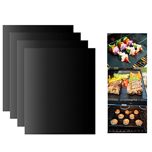 BBQ Grill Mats - Pack OF 4 - A Miracle Barbecue solution for Gas, Charcoal or Electric Grill - Perfect for Grilling Ribs, Shrimps, Steaks, Burgers and Vegetable ,The perfect complement to your grill set! Also great for use as a baking mat or oven liner!