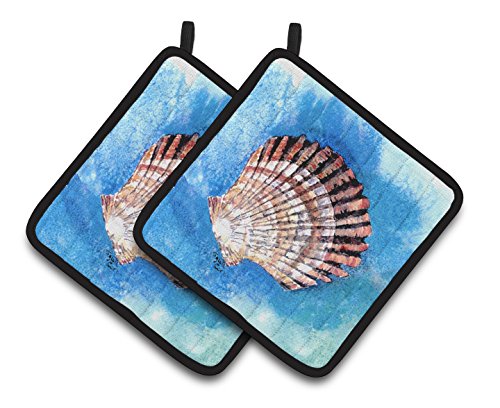 Caroline's Treasures Scallop Sea Shell Pair of Pot Holders 8008PTHD, 7.5HX7.5W, Multicolor
