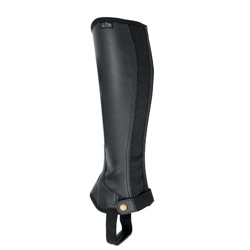 Studio : Weatherbeeta USA Inc. Publisher : Weatherbeeta USA Inc. Binding : Sports Product Description Saxon(R) Equileather Adult Half Chaps Synthetic half chaps give you the traditional look of leather in an easy to care for style. Features: Synthetic equileather half chaps are soft, grippy and classic looking YKK side zip for easy on/off Match perfectly with Saxon Equileather Paddock Boots Easy to care for, just wipe clean with water Item Specifications: Material: Synthetic Suede Sizing: Width is measured around the widest portion of the calf, over the clothing that is to be worn. 0
