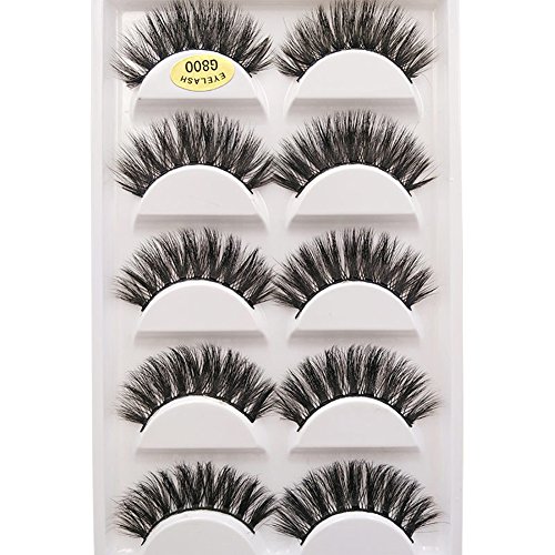 Scala 5 Pairs 3D Mink Lashes Hand-made Dramatic Makeup Strip Lashes Mink Fake Eyelashes Thick Crisscross Deluxe False Lashes Black Nature Fluffy Long...