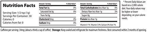Does it contain caffeine?Yes, each half-teaspoon (1g) serving contains roughly 34mg of caffeine, about 1/3 a cup of coffee. However, Matcha also contains L-Theanine, which has a calming and leveling affect, so it doesn't make you feel jittery or wired like coffee does.