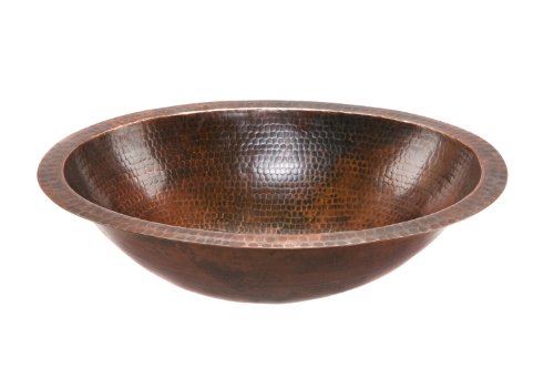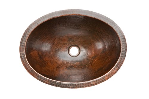 Premier Copper Products LO19FDB Oval Under Mount Hammered Copper Bathroom Sink, Oil Rubbed Bronze