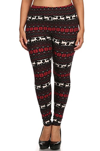 Leggings Depot Ultra Soft Popular Best Printed Womens Fashion Leggings (PLUS, RED CHRISTMAS)