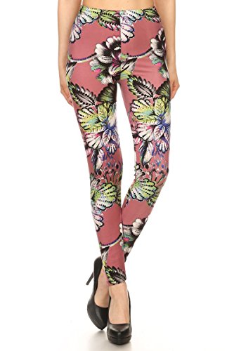 Leggings Depot Ultra Soft Popular Best Holiday Christmas Printed Women Fashion Leggings (One Size (Size 0-12), Elegant Flora)