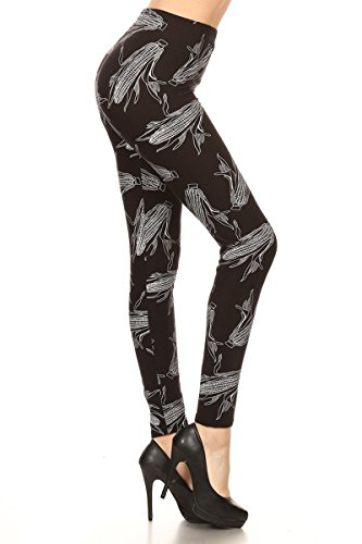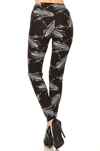 Leggings Depot Ultra Soft Popular Best Holiday Christmas Printed Women Fashion Leggings (Extra Plus, Corn Husks)