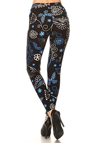 Leggings Depot Ultra Soft Popular Best Holiday Christmas Printed Women Fashion Leggings (One Size (Size 0-12), Buoyant Blooms)